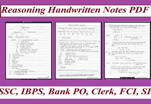 Reasoning Handwritten Notes PDF in Hindi by Marsal Institute with short tricks, concepts, example and s questions . General Intelligence and reasoning ability Class Notes for SSC, NRA, RRB, Bank, Police, CDS, NDA, UPPSC, UPSSSC and all Govt jobs competitive exams with free test series ....