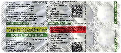 Nobel Spas 40mg/100mg Tablet is a combination medicine used in the treatment of abdominal pain. It works effectively to reduce abdominal pain, bloating, discomfort and cramps by relaxing the muscles of the stomach and gut. It also blocks certain chemical messengers that cause pain, inflammation and fever.