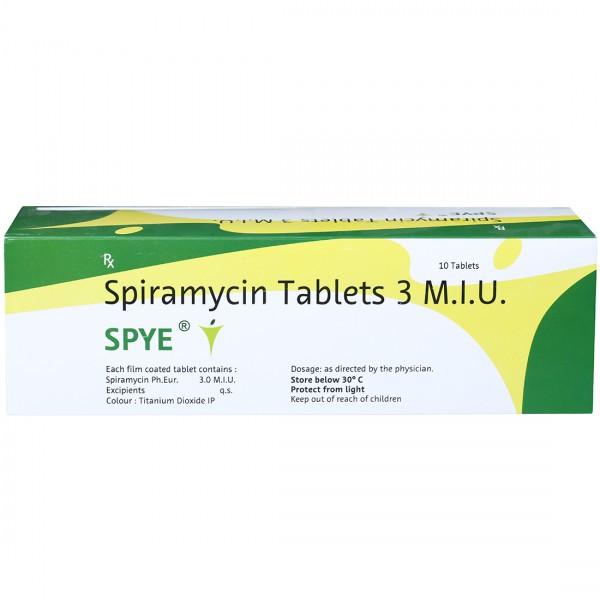 Spye Tablet 10's contains 'Spiramycin' as an antibiotic that treats bacterial infections like various infections of the abdomen, bone, skin, heart and soft tissues.