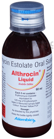 Althrocin 250 MG Syrup is a macrolide antibiotic used to treat bacterial infections of the lungs, skin, bones, stomach, and intestine. This medicine kills or stops the growth of bacteria causing the infection. It is not effective against infections caused by viruses.