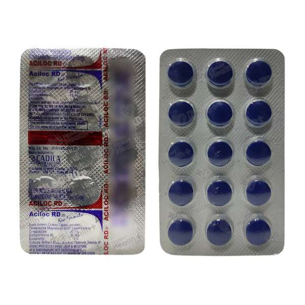 Aciloc RD 20 Tablet 10's contains Omeprazole and Domperidone. Omeprazole works by blocking the action of an enzyme called gastric proton pump, which is responsible for the production of acid. Domperidone works by increasing the movements and contractions of stomach muscles.