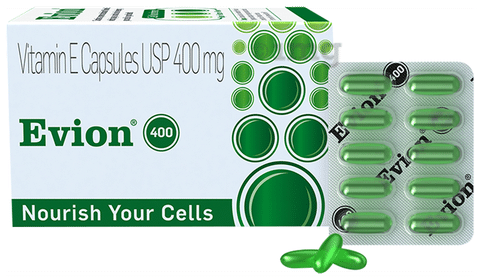 Evion 400 Mg Capsule is a Tablet manufactured by Merck Ltd. It is commonly used for the diagnosis or treatment of Muscle Cramps, Skeletal muscle functions. It has some side effects such as Nausea, Headache, Fall of Blood Sugar level. The salts Tocopheryl Acetate are involved in the preparation of Evion 400 Mg Capsule.