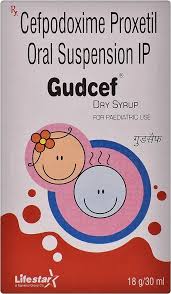 Gudcef 100 MG/5ML Descriptioninfection of lungs, airways, throat, ears, nose etc. Gudcef Dry Syrup contains cefpodoxime as its active ingredient. This medicine specially designed for use in children and should be used under adult's supervision. It works by inhibiting the growth of infection causing bacteria.