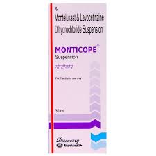 Monticope Suspension contains Levocetirizine and Montelukast. Together these two relieve sneezing and runny nose caused due to allergies. Levocetirizine is an antiallergic that blocks a chemical messenger (histamine) responsible for runny nose, watery eyes, and sneezing. Montelukast is a leukotriene antagonist.