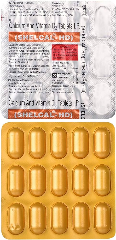 It is commonly used for the diagnosis or treatment of Bones weakening, acidity, better absorption, stomach ulcer, heartburn. It has some side effects such as constipation, headache, loss of appetite, vomiting. The salts Calcium (1250Mg) , Vitamin D3 (250IU) are involved in the preparation of Tablet Shelcal HD 500mg.