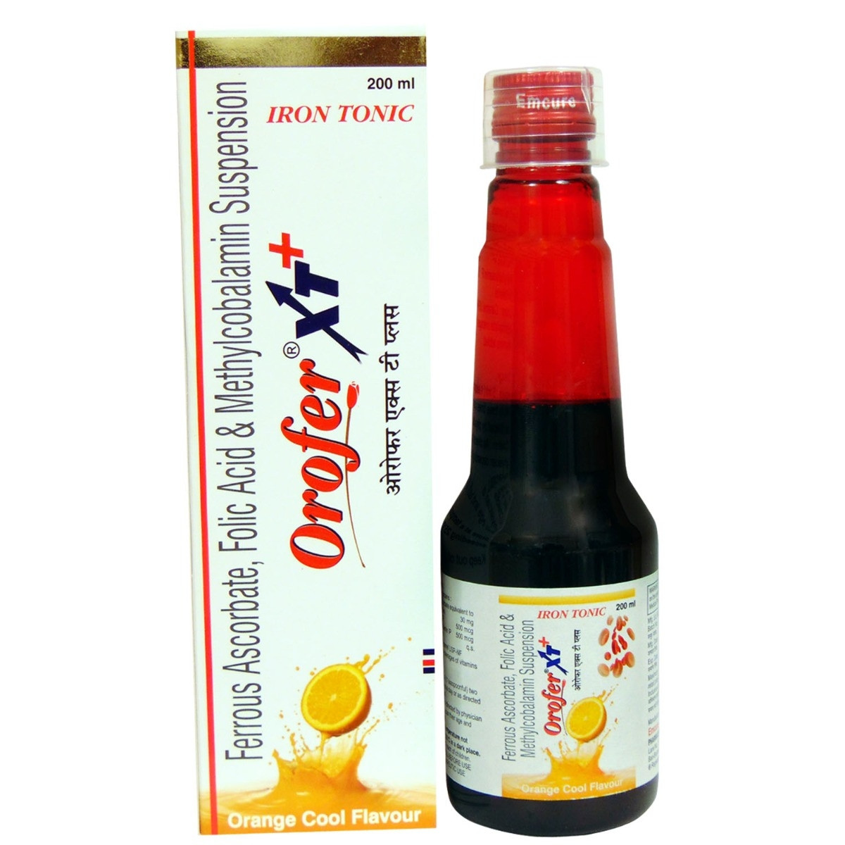 Orofer XT Syrup 200 ml is a combination of two drugs: Ferrous ascorbate (iron supplement) and folic acid (a form of vitamin B9). Orofer XT Syrup 200 ml works by increasing red blood cells (RBC) and haemoglobin (a protein) production in the body.